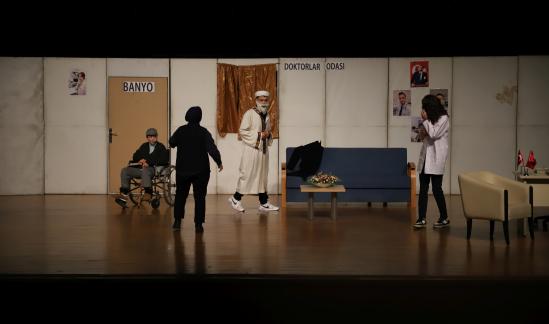 Eğitim Fakültesi öğretim üyesi Doç. Dr. Kübra Şengül’ün yönetmenliğinde hazırlanan oyunda; Semih Salor, Ramazan Aydıncı, Esra Küçük, Sümeyye Koç, Fatma Kara, Zehra Özdemir, Damla Duman, Tuğba Nur Ağa, Sudenaz Aydemir, Hüner Yalçın ve Leyla Coşkun performanslarıyla izleyicilerden tam not aldı.